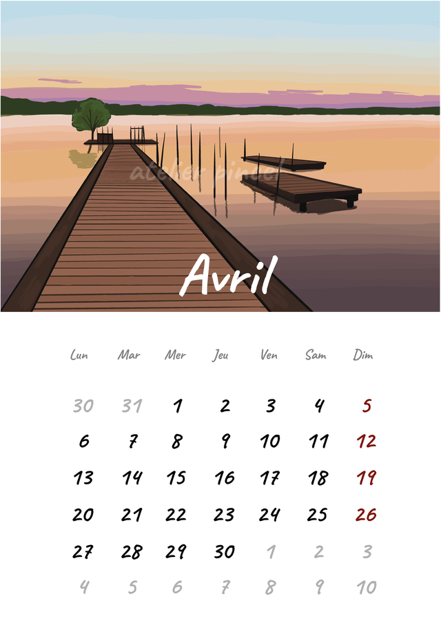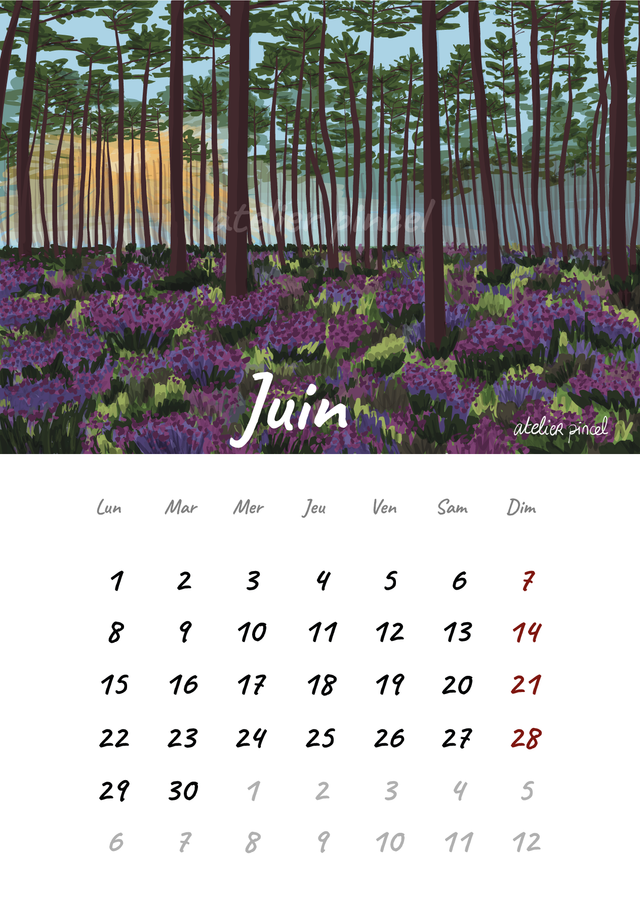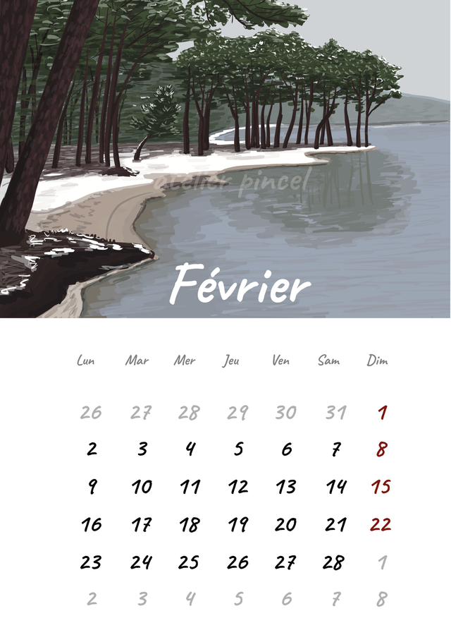 Calendrier 2026 A4 illustrée Landes